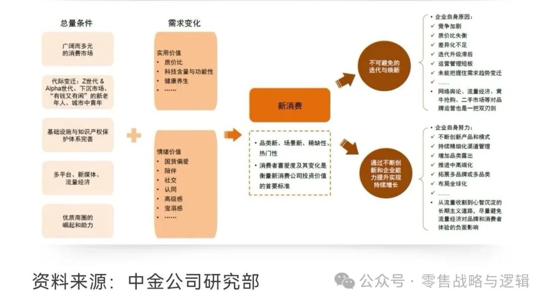 新消费的逻辑是多重因素交织的动态体系,其核心在于通过技术创新、需求升级、模式重构和政策引导,构建供需高效匹配的生态系统。
