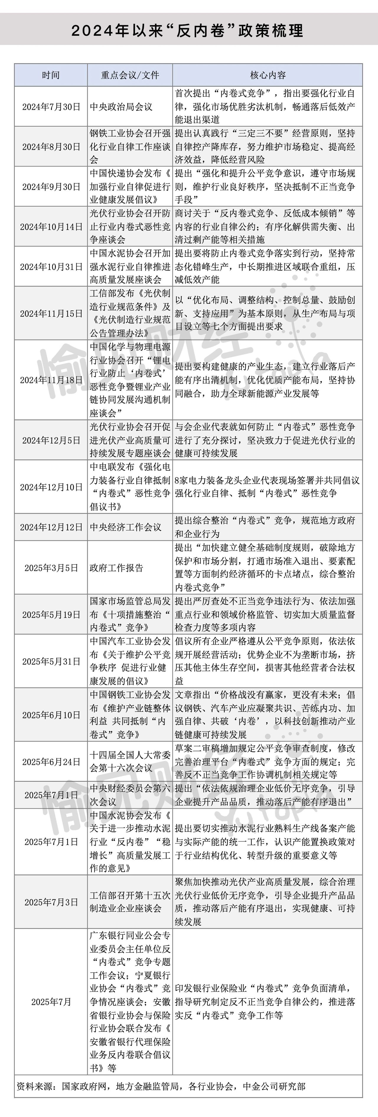 以“反内卷”之举解放发展生产力已逐渐成为各行业共识。从下图可见,“反内卷”之风从传统制造业吹至电商、外卖等互联网平台,近期,银行保险业亦打响“反内卷”攻坚战。