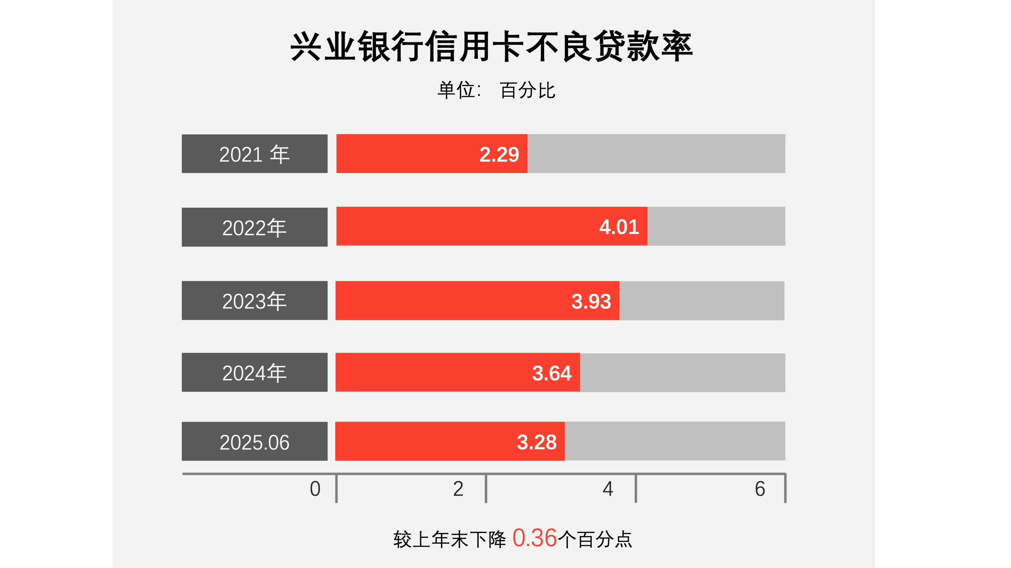 截至报告期末,信用卡不良贷款率3.28%,较上年末下降0.36个百分点。