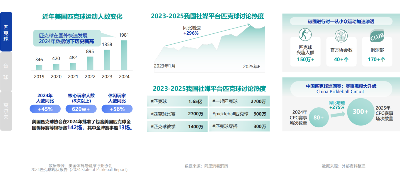 趋势球类(匹克球、台球、高尔夫等)属于蓝海市场,增长潜力大,但仍需加强市场教育。