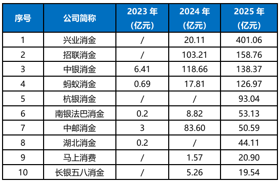 从历史数据来看,头部消金机构的不良转让已形成常态化趋势:招联金融和中银消金在过去两年的不良资产挂牌转让规模(以本息计,下同)均突破百亿;蚂蚁消金的增长势头更为迅猛,2025年不良转让规模同比暴增600% 以上,展现出互联网系消金机构加速风险出清的态势。